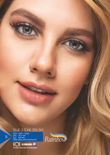 لنز رنگی آبی عسلی رینبو بلو 306 اسکای تن 3