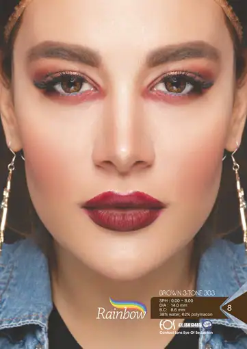 لنز رنگی قهوه ای رینبو براون 303 تن 3