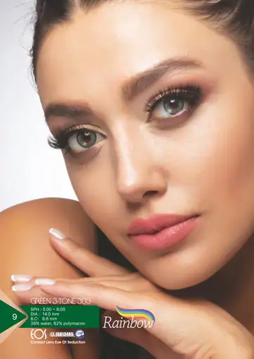 لنز رنگی سبز عسلی رینبو گرین 303 تن 3