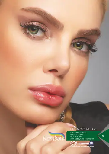 لنز رنگی سبز عسلی رینبو گرین 306 تن 3