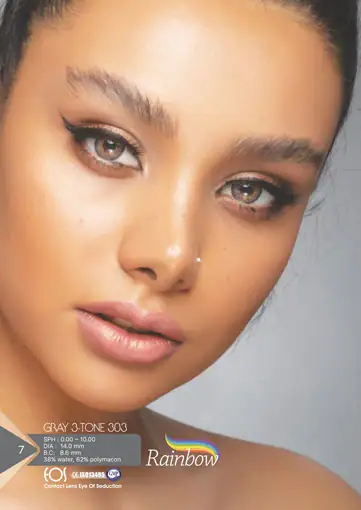 لنز رنگی طوسی عسلی رینبو گری 303 تن 3